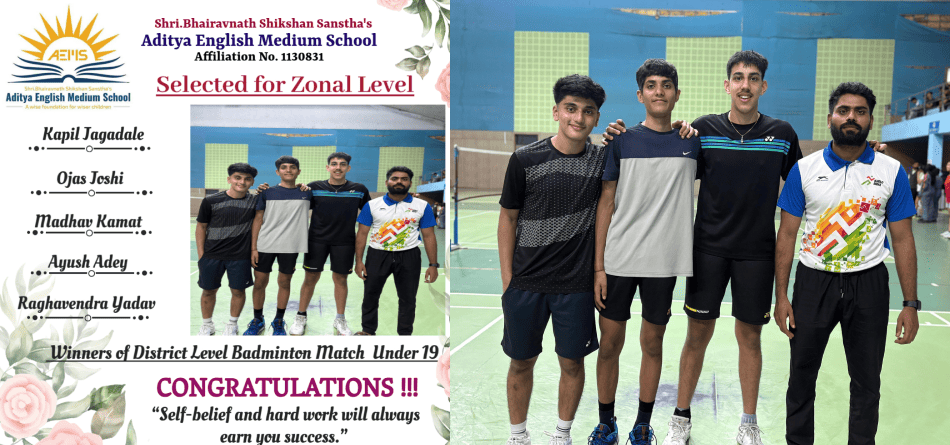 admin2025-10-16T06:56:02+00:00Victory at ZP District Badminton Tournament! We are thrilled to announce that Aditya English Medium School, Baner, Pune emerged CHAMPIONS in the ZP District Badminton Competition (Under-17 Boys)! In a nail-biting final match against The Knowledge Habitat School, Pune, our talented team showcased incredible skill, determination, and teamwork to...