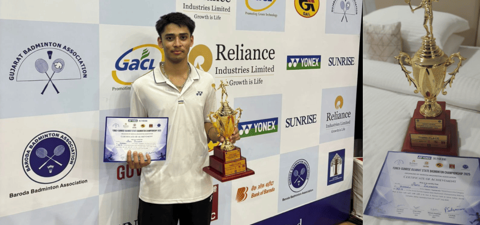 AEMS’s student-Parth Zalavadiya has emerged as the Bronze Medalist in YONEX-SUNRISE Gujarat State Badminton Championship 2025
